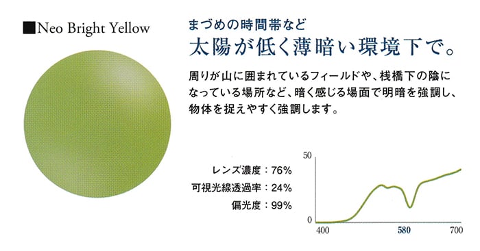 フィッシングのまづめの時間帯など太陽が低く、薄暗い環境下でのパフォーマンスをサポート、山登りで木に囲まれ薄暗いフィールドなどにも最適。