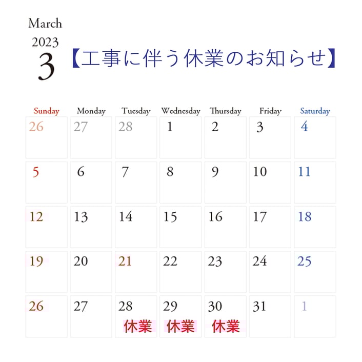 ※2023年4月以降の休業日はスケジュールが確定次第ご報告させていただきます。